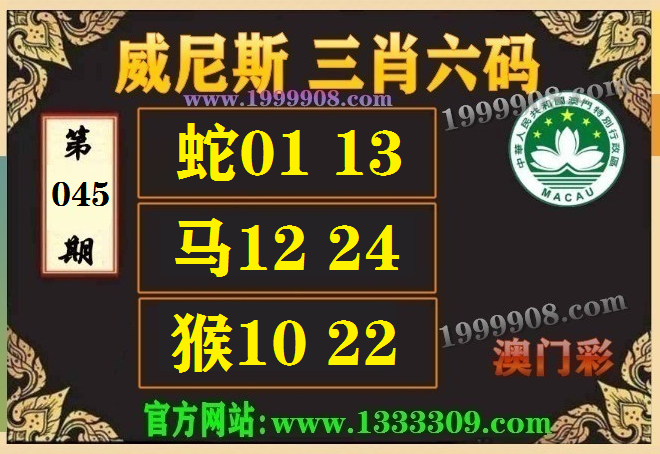 045期:(威尼斯三肖六码【蛇01.13、马12.24、猴10.22