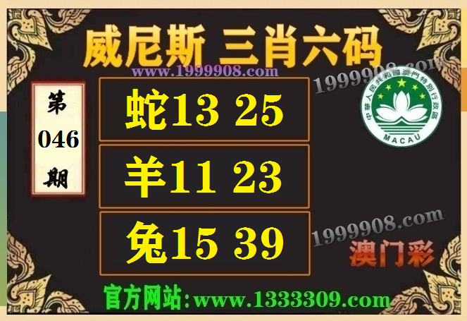 046期:(威尼斯三肖六码【蛇13.25、羊11.23、兔15.39