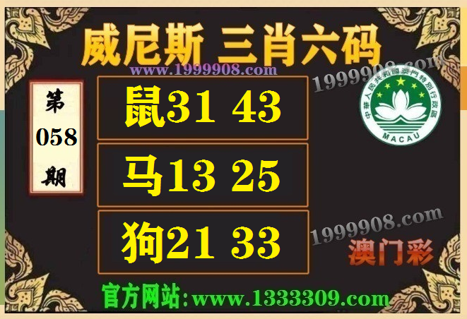 058期:(威尼斯三肖六码【鼠31.43、马13.25、狗21.33