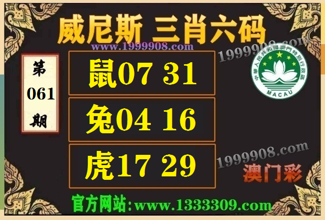 061期:(威尼斯三肖六码【鼠07.31、兔04.16、虎17.29