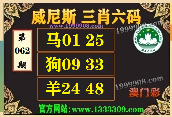 062期:(威尼斯三肖六码【马01.25、狗09.33、羊24.48